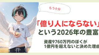 株式投資を始めて18年、ついに資産1億円を超えて億り人になりました。インデックス投資だけをコツコツ続けた結果、2026年1月に達成。感動より「ほっとした」が正直な感想。億り人になって変わったこと、変わらないこと、そして家族旅行という最初の一歩について
