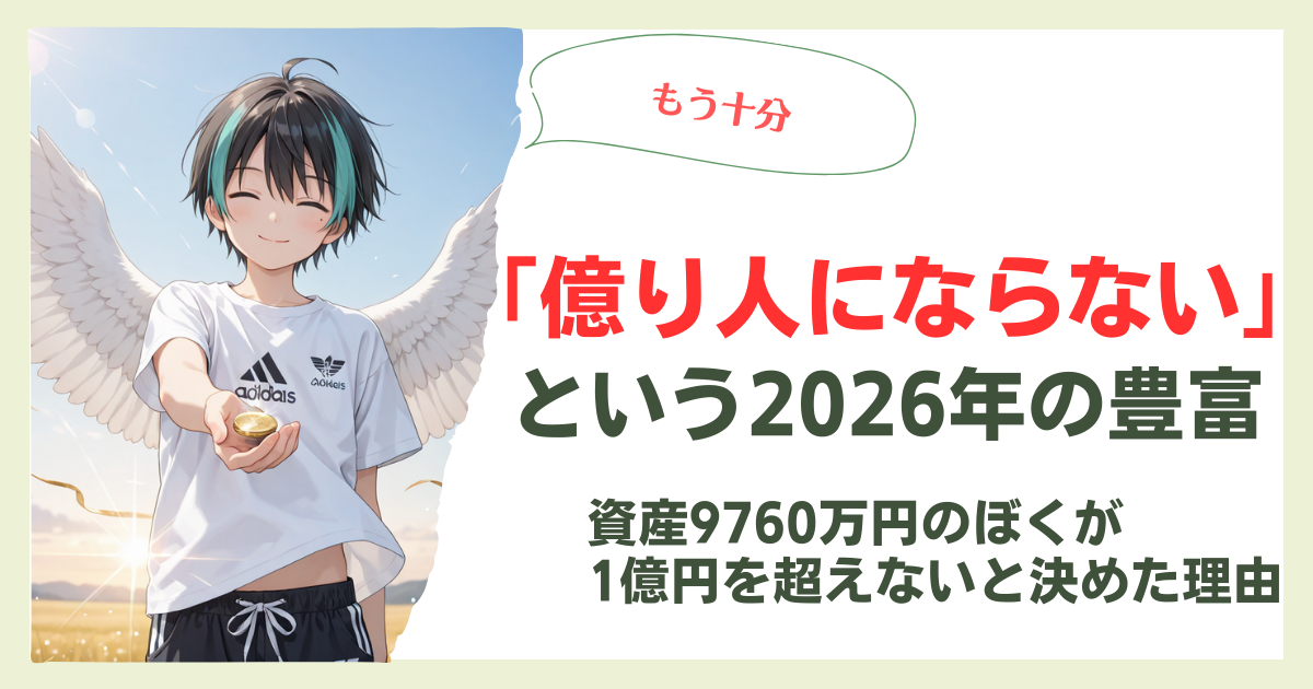 新年といえば抱負を語る季節なんですけど、ぼくの2026年の抱負はちょっと変わってます。「億り人にならない」こと。これが今年の目標です。