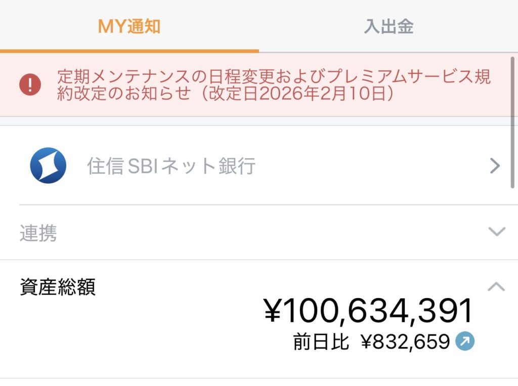 それから間もなく、相場が動いた日がありました。朝起きて「今日、超えそうだな」と予感した。すぐに証券口座を開いて、株価をチェック。予想通り、資産は1億円を超えていました。