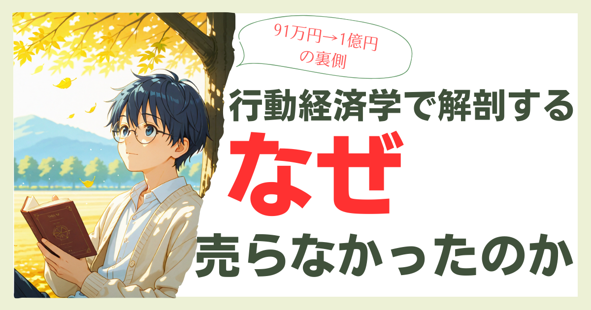 そうなんですよ。「売らない」って、言葉にすると簡単なんだけど、実際に資産が半減していく画面を見ながら何もしないのは、かなりキツい。じゃあなぜぼくは売らなかったのか。今回は行動経済学の視点から、その裏側を解剖してみます。