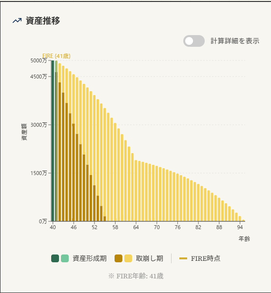 シミュレーションは感情を排して事実を示してくれる。40歳・5000万円・月27万円で、95歳まで暮らせる。この数字を知ったうえで、どう生きるかはあなた次第。