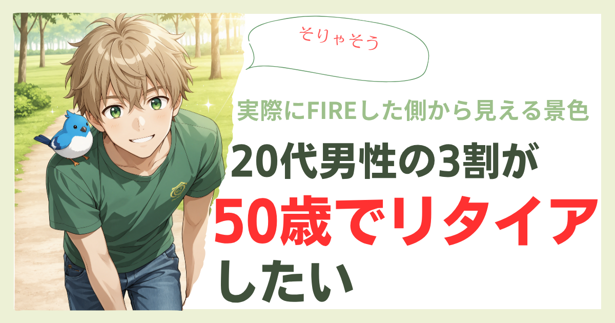 20代男性の29.1%が、50歳以下でリタイアしたいと思っている。